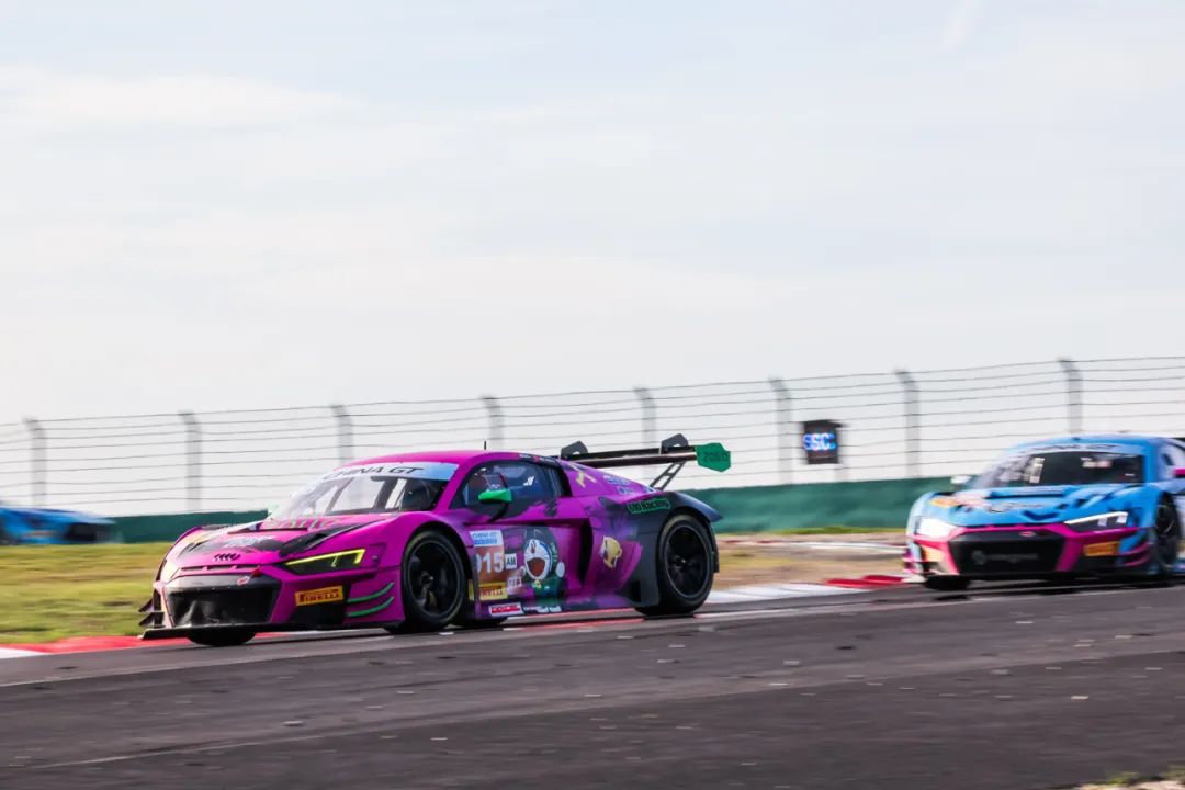 首次造访上海F1赛道的由潮流服饰品牌EVISU独家赞助的赛车手王一博在前半程赛事完成稳健驾驶,将赛车交予队友潘君临。GTSSC分站冠军得主潘君临上车后快速追近前方车阵,并和Origine Motorsport车队接棒闵衡的顾猛为GT3 AM组别领跑展开交锋。两人同时在和Chen Yinyu争夺全场第七。后方接棒谢欣哲的Origine Motorsport车手吕威、接棒余快的廖启舜亦不断提速,加入到这一战团的争斗中。