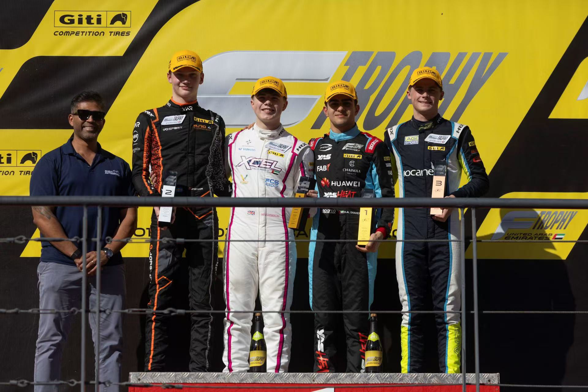 拉希德·阿尔达赫里在排位赛中以0.179秒的优势击败瑞典车手古斯塔夫·琼森,夺得了最快圈速和杆位。琼森在起步时抢占了先机,并在开局以1.420秒的优势领先阿尔达赫里。第二圈,阿尔达赫里开始缩小这一差距,但在后面的比赛中,由于傅宇豪的赛车停赛,安全车出现在赛道上。随后的比赛中,前五名车手以紧密的队形,一同冲向了方格旗。