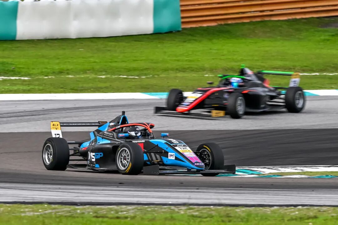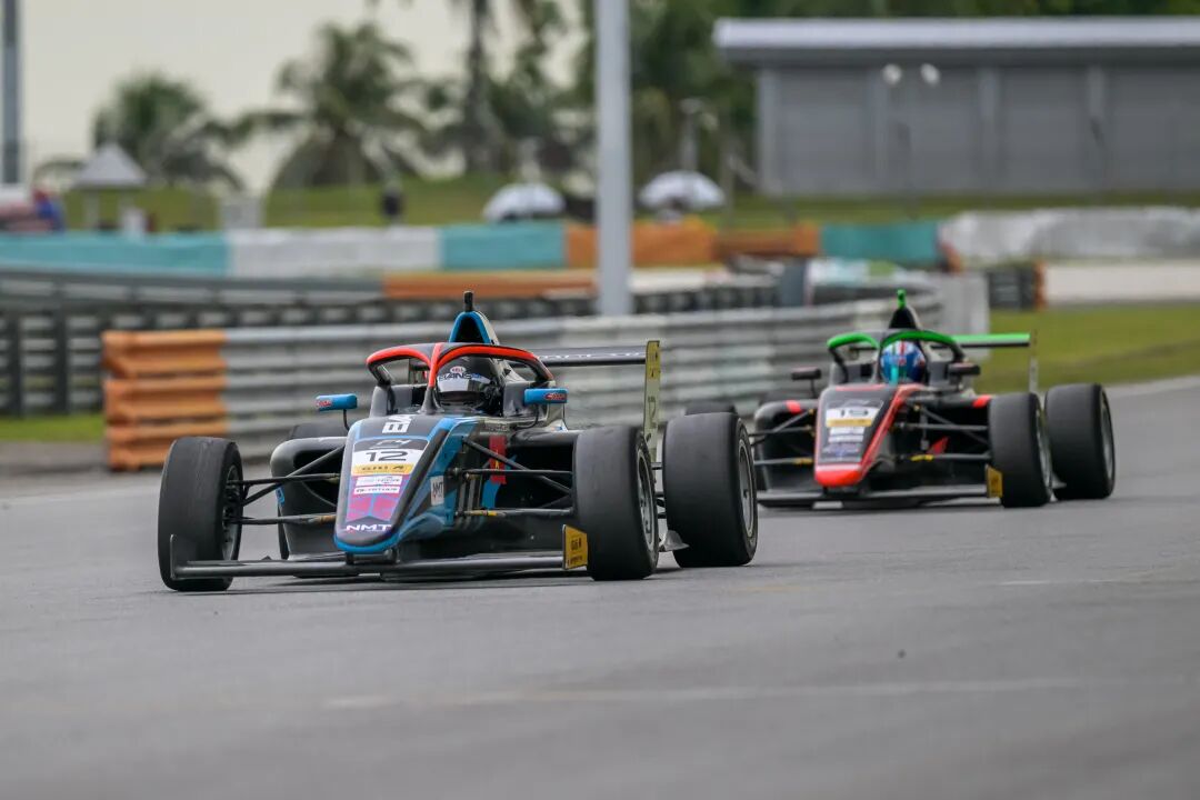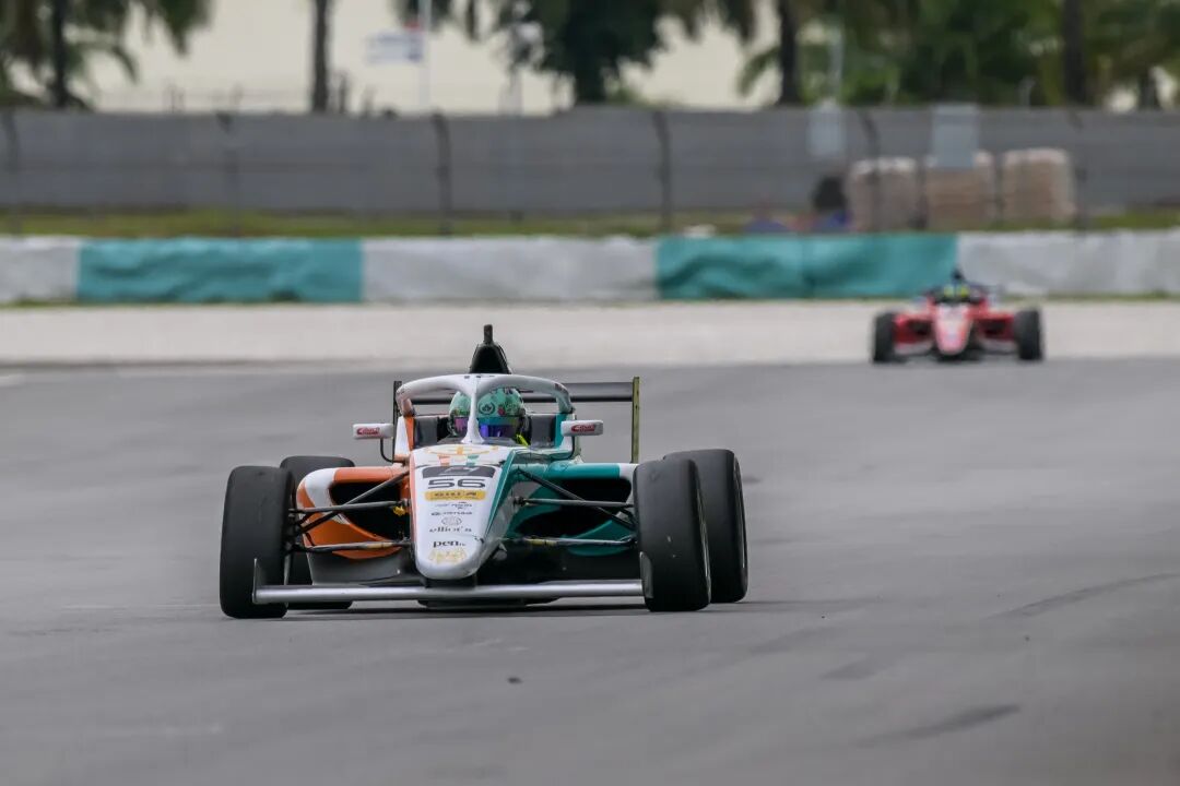 Elsewhere Thomas Yu Lee had a tricky race – first a startline infringement which cost him a drive through penalty, then crossing the demarcation line and receiving another, and then unluckily he would do so again and be excluded for multiple transgressions. In good humour, the American chalked it up to ‘lessons learned’. But he wasn’t the only one creating fireworks. Ben Nguyen duelled this time with Imran Putera and the Malaysian new boy tapped his team-mate into a pirouette at Turn 7 for which he too would receive a time penalty.