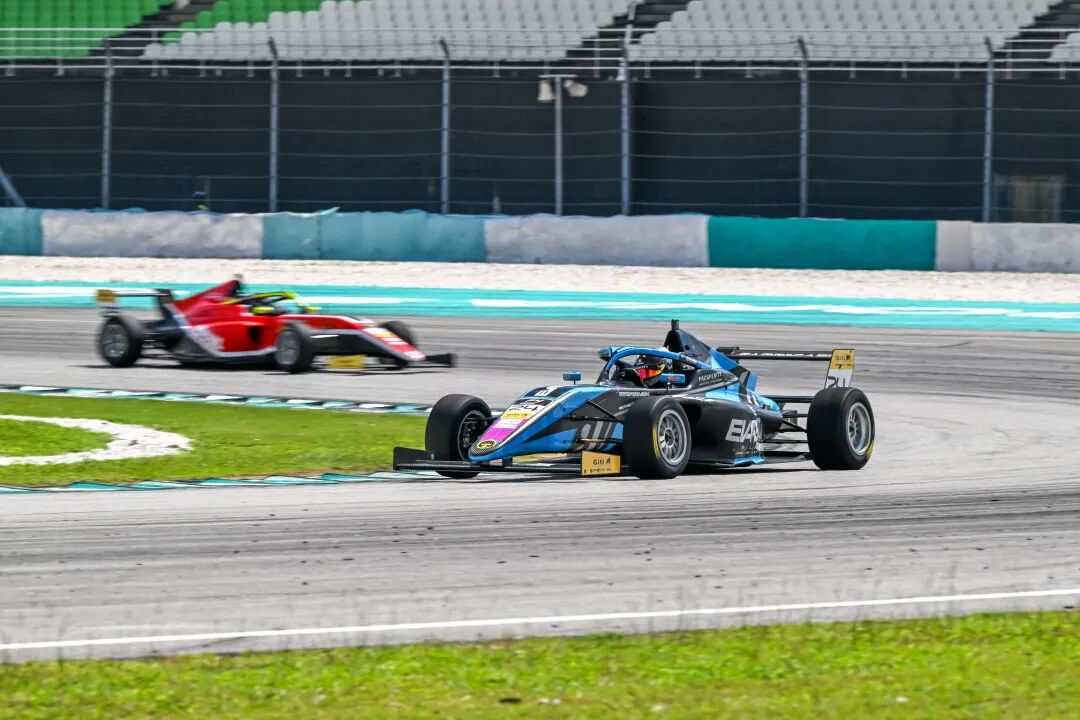Ben Nguyen was able to fend off from Imran Putera whilst the battle for Wang Zhongwei and Thomas Yu Lee ended in the Chinese driver’s favour and he was even able to catch the young BlackArts racers just before the end. The final points finishes went to the Singaporean stars Kareen Kaur and Joshua Berry, with Worapong Aiemwichan completing the field.